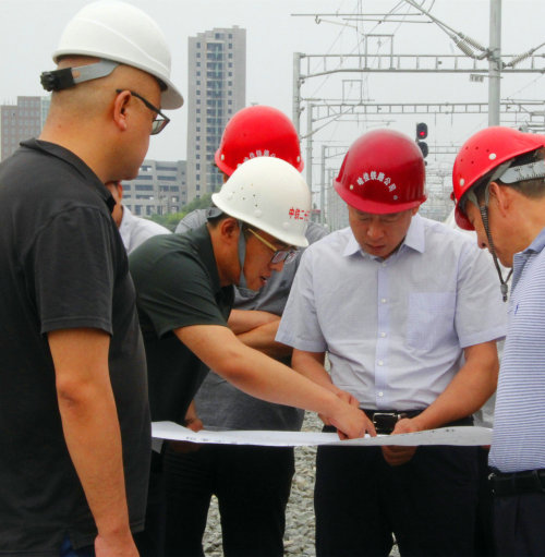 在施工現(xiàn)場,郭慶富結(jié)合施工方案向姜輝詳細(xì)匯報了自新增六、七站臺動工以來,項目部的施進(jìn)展情況、施工方案、關(guān)鍵節(jié)點、安全質(zhì)量卡控重點、存在的問題等。姜輝對工程進(jìn)展情況給予了肯定并仔細(xì)查看了現(xiàn)場文明施工、安全防護(hù)、標(biāo)準(zhǔn)化作業(yè)等情況;對施工障礙、推進(jìn)難點、存在問題進(jìn)行了摸排并結(jié)合下一步工作強(qiáng)調(diào),參建單位要發(fā)揮主體責(zé)任,加強(qiáng)施工組織,確保兌現(xiàn)節(jié)點;要樹牢安全質(zhì)量紅線意識,確保施工安全和工程質(zhì)量;要以問題為導(dǎo)向,公司及路局相關(guān)部門、產(chǎn)權(quán)單位積極配合,全力為施工創(chuàng)條件。
