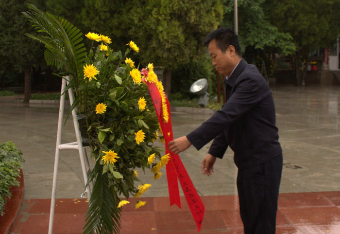 公司副總經(jīng)理、平天項目黨支部書記魏惠民為英烈敬獻花籃