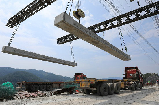 圖為空心板吊裝就位后的找龍壩河特大橋