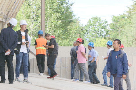 觀摩學習人員聽取中鐵二十一局三公司麗香鐵路項目部拌合站管理經(jīng)驗及先進理念介紹