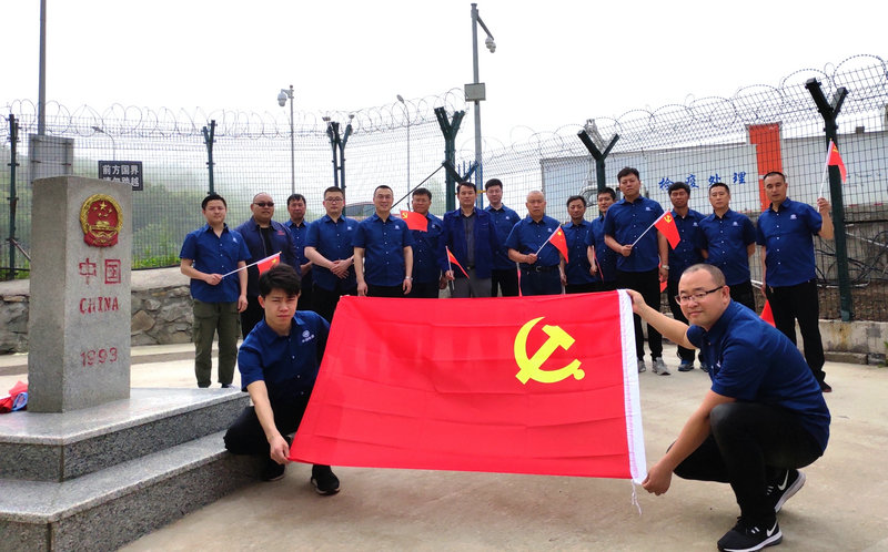 步入中俄邊境綏芬河國門的那一刻,大家心潮澎湃、熱血沸騰。莊嚴大氣的國門城樓,國旗飄揚,國徽閃耀,“中華人民共和國”七個鮮紅大字耀眼奪目。腳踏堅實國土,高擎鮮紅黨旗,仰望高高飄揚的五星紅旗,祖國在我心中。 “慶祝建黨98華誕,祝福祖國繁榮昌盛”振聾發(fā)聵,大家耳熟能詳?shù)母枨?ldquo;我和我的祖國”回響在中俄邊境線。在熠熠生輝的界碑前合影,駐足國門城樓眺望邊城美景,為祖國的日益強大感到驕傲和自豪。