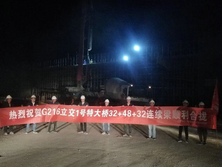 6月28日凌晨1點,重點工程G216立交1號特大橋(32+48+32)m連續(xù)梁順利合攏。該連續(xù)梁是我標(biāo)段的重點控制性工程之一,項目部通過動態(tài)調(diào)整人材機(jī)等各項資源,將各管理人員下沉至施工一線、及時分析現(xiàn)場,及時指揮、超前謀劃,制定強(qiáng)有力保障措施,實行倒排工期、根據(jù)節(jié)點目標(biāo)采取獎勵激勵等措施,在確保安全質(zhì)量、環(huán)保的前提下完成了(32+48+32)m連續(xù)梁段的順利合攏。目前,該橋正在進(jìn)行最后一聯(lián)連續(xù)梁緊張的施工任務(wù)中,預(yù)計在7.15節(jié)點目標(biāo)之前完成合攏。