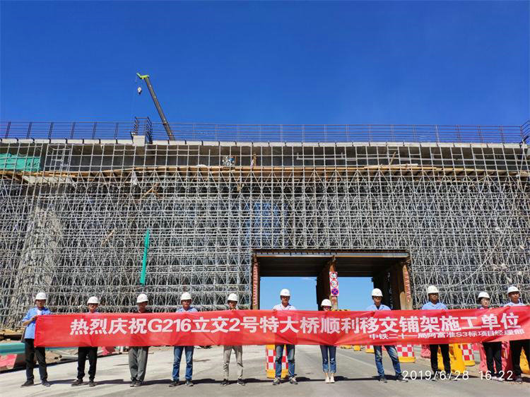 6月28日,由業(yè)主和鋪架單位組成的移交小組對公司阿富準(zhǔn)鐵路項目部施工的G216立交2號特大橋進(jìn)行了移交驗收,經(jīng)過移交小組仔細(xì)檢查,該橋以零缺陷順利移交。該橋全長1033.82米,跨越在建G216高速公路時為(32+48+32)m連續(xù)梁。該橋墩高跨大、連續(xù)梁段工藝繁雜、工期緊、過往車輛多,項目部對連續(xù)梁段采用了分段澆筑施工,為保證質(zhì)量,多次對支架搭設(shè)、模板安裝、鋼筋綁扎、波紋管安裝等進(jìn)行全面的檢查,及時排除安全質(zhì)量隱患,推進(jìn)大橋施工有序推進(jìn)。