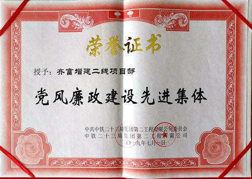 2019年,中鐵二十三局集團(tuán)二公司齊富增建二線項(xiàng)目部高舉習(xí)近平新時(shí)代中國(guó)特色社會(huì)主義思想偉大旗幟,深入學(xué)習(xí)貫徹黨的十九大精神,以黨風(fēng)廉政建設(shè)為統(tǒng)領(lǐng),思想建黨、紀(jì)律強(qiáng)黨、制度治黨協(xié)同發(fā)力,嚴(yán)格落實(shí)中央精神,堅(jiān)持不懈糾正“四風(fēng)”,每名黨員干部均自覺簽署了“廉潔責(zé)任書”,毫不動(dòng)搖地推動(dòng)全面從嚴(yán)治黨、黨風(fēng)廉政建設(shè)和反腐敗工作。經(jīng)中共中鐵二十三局集團(tuán)第二工程有限公司委員會(huì)、中鐵二十三局集團(tuán)第二工程有限公司綜合評(píng)定,授予齊富增建二線項(xiàng)目2019年度“黨風(fēng)廉政建設(shè)先進(jìn)集體”榮譽(yù)稱號(hào),同時(shí),該項(xiàng)目人員王鐵超、王雷被授予“黨風(fēng)廉政建先進(jìn)個(gè)人”榮譽(yù)稱號(hào)。