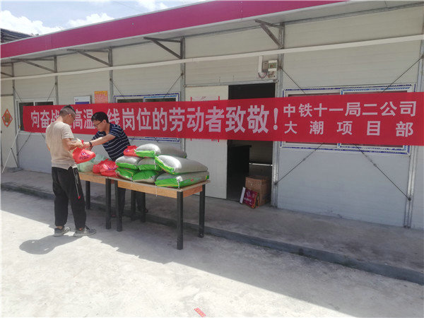 連日來,梅州地區(qū)持續(xù)高溫,晝間工人作業(yè)強度大,施工現(xiàn)場遮蔽物較少,一線工人極易發(fā)生中暑危險。對此,中鐵十一局二公司大潮項目領(lǐng)導高度重視,要求項目辦公室購置了一批防暑用品,于7月2日上午由項目安全總監(jiān)陳沛帶隊,將絲絲清涼送到了每個施工班組,并向一線勞動者致敬。