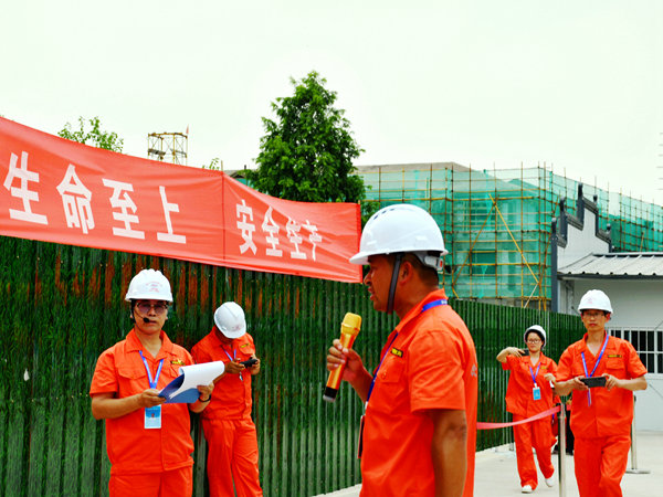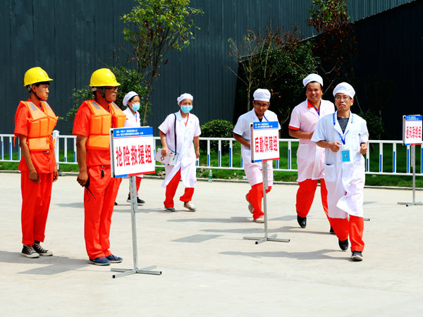 隨著應(yīng)急哨音的響起,技術(shù)保障組、安全保衛(wèi)組、搶險(xiǎn)救援組、后勤保障組、醫(yī)療救護(hù)組和通訊聯(lián)絡(luò)組等56人迅速集合完畢。
