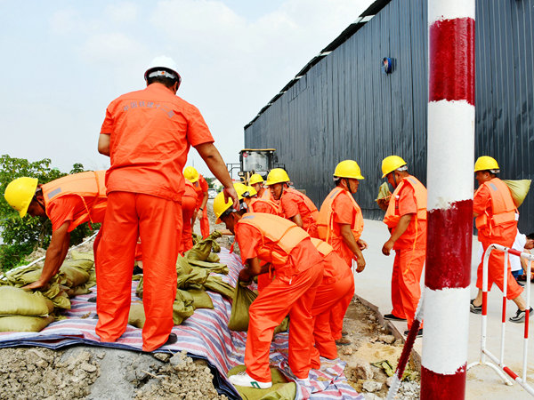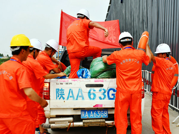 汛情驟然發(fā)生后,馬捷一邊向項(xiàng)目經(jīng)理部經(jīng)理余浩報(bào)告情況,一邊組織人員搶險(xiǎn)。