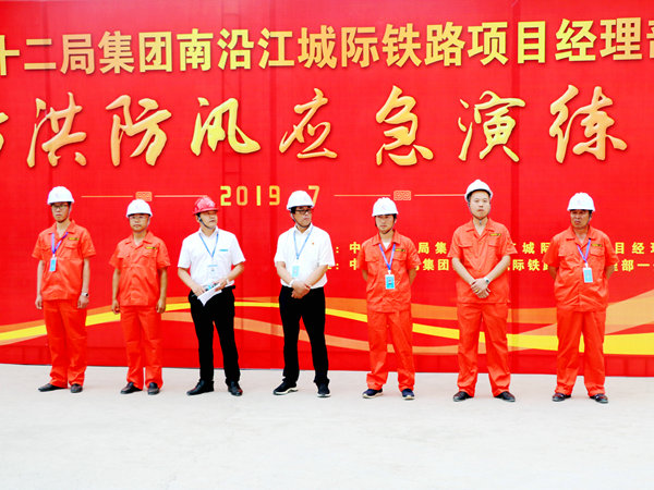 原來(lái),這是中鐵十二局集團(tuán)南沿江城際鐵路項(xiàng)目經(jīng)理部主辦、所屬一分部承辦的根據(jù)南方多雨、緊靠長(zhǎng)江流域進(jìn)行的一場(chǎng)有針對(duì)性的“防洪防汛應(yīng)急演練”現(xiàn)場(chǎng)。