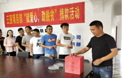 為全面完成“精準扶貧,精準脫貧”工作目標,加大對股份公司定點扶貧的河北省張家口市萬全區(qū)、河北省張家口市尚義縣、青海省果洛州甘德縣幫扶力度,早日打贏脫貧攻堅戰(zhàn),中鐵二十一局四公司三亞項目黨支部積極響應(yīng)股份公司黨委和公司黨委號召,于7月7日至8日開展了“獻愛心、助脫貧”捐款活動?;顒影l(fā)起后,支部黨員積極主動帶頭捐款,項目部全體職工紛紛獻出自己的愛心,為定點幫扶地區(qū)的困難群眾伸出自己的援助之手。