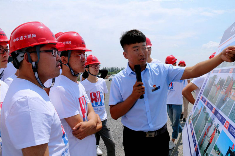 在建項(xiàng)目參觀活動中,22名新學(xué)員在公司業(yè)務(wù)部室的組織下,前往京藏JZLM1標(biāo)、京藏JZ14標(biāo)等項(xiàng)目參觀學(xué)習(xí),并觀摩了將在下半年開通運(yùn)營的銀吳客專銀川機(jī)場黃河特大橋,通過參觀,畢業(yè)生切身了解了今后的工作環(huán)境和方向。參觀學(xué)習(xí)之余,畢業(yè)生代表同京藏JZ14標(biāo)項(xiàng)目部職工開展了一場籃球友誼賽。賽場上,球員在一次次進(jìn)攻與防守中盡顯了團(tuán)隊(duì)合作的力量,最終比賽以30:30的比分宣告結(jié)束。