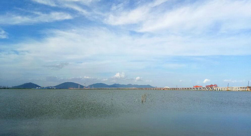 珠海洪鶴大橋HHTJ4標(biāo)段橋梁樁基均位于鶴洲南圍墾區(qū)魚塘中,魚塘水深,淤泥層厚,且時常有臺風(fēng)暴雨,項目工期緊,任務(wù)重,工程難度大。為此,項目一開始就以快速推進(jìn)施工生產(chǎn)為工作重心,以下達(dá)的節(jié)點工期為目標(biāo),集結(jié)各種資源,細(xì)化施組,精心謀劃,想方設(shè)法克服諸多不利因素,搶晴天,戰(zhàn)雨天,在鶴洲南圍墾區(qū)上完成了一個又一個重要的工程挑戰(zhàn)。