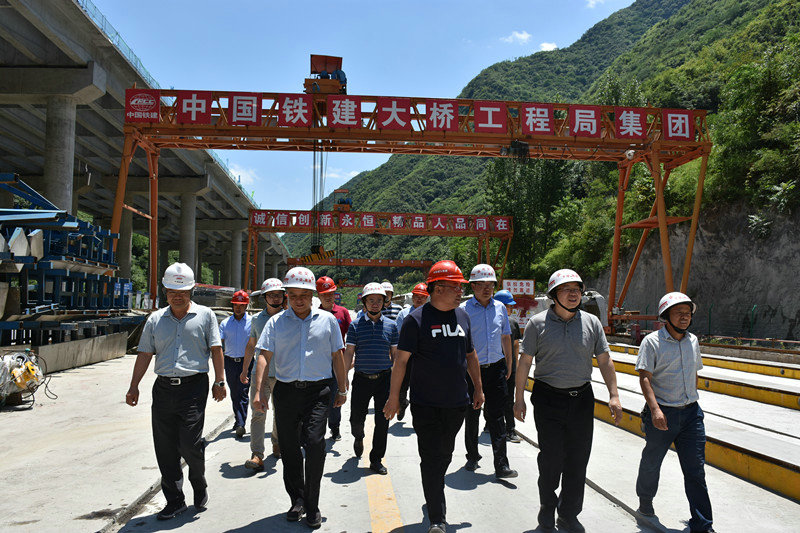 調(diào)研一行人員先后來到雙臺隧道進(jìn)口、2#梁場、雞公寨隧道出口。聽取了建設(shè)單位全線施工進(jìn)度、梁場建設(shè)及梁片架設(shè)、征地拆遷等方面的匯報(bào)。