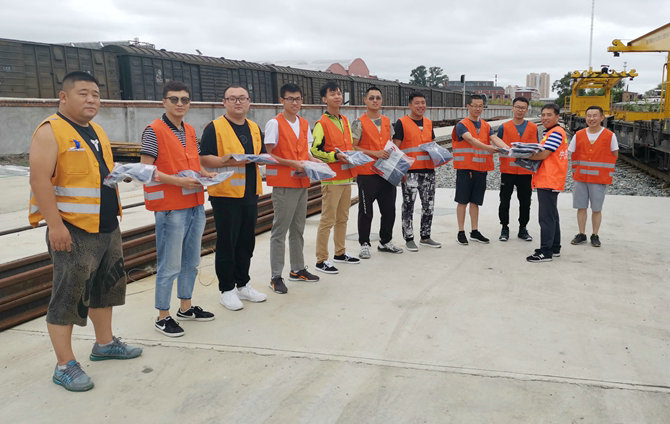 為扎實搞好此次活動,二公司工會、齊富項目部工委、項目綜合辦公室緊抓一線職工高溫作業(yè)問題,從防曬、防暑上下功夫,為作業(yè)人員精心挑選防曬服,送往作業(yè)現(xiàn)場進(jìn)行走訪慰問。項目部副總工程師孟曉東親切的把慰問品送到每一位現(xiàn)場人員手中,員工們臉上洋溢著幸福的微笑。