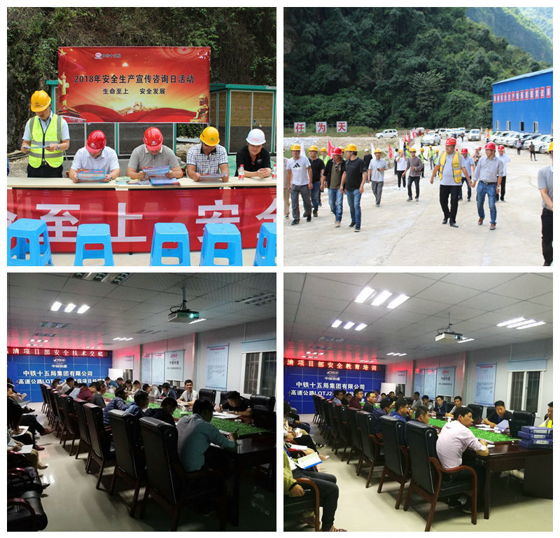 臨清項(xiàng)目技術(shù)人員在本項(xiàng)目以前多從事橋梁路基工程施工,對于隧道施工管理經(jīng)驗(yàn)欠缺,但項(xiàng)目部并沒有因此放低對自己的要求。項(xiàng)目部全國“安全生產(chǎn)月”活動為契機(jī),組織開展了形式多樣的宣傳活動,多角度、全方位做好新修改的《安全生產(chǎn)法》《中共中央國務(wù)院關(guān)于推進(jìn)安全生產(chǎn)領(lǐng)域改革發(fā)展的意見》的宣傳普及工作,增強(qiáng)全民安全生產(chǎn)意識,在全項(xiàng)目營造了濃厚的“強(qiáng)化安全發(fā)展觀念,提升全民安全素質(zhì)”的良好氛圍。