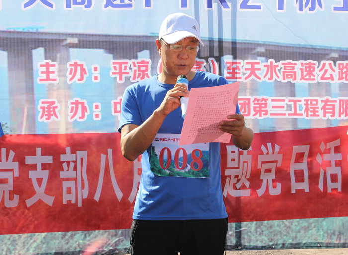 甘肅省公建集團(tuán)副經(jīng)理、平天高速平?jīng)龆雾?xiàng)目班主任李文芙講話(huà) 活動(dòng)開(kāi)始前,公司副總經(jīng)理、項(xiàng)目負(fù)責(zé)人魏惠民代表平天項(xiàng)目部致歡迎詞,對(duì)長(zhǎng)期以來(lái)關(guān)心和支持項(xiàng)目工作的各級(jí)領(lǐng)導(dǎo)、供應(yīng)商、勞務(wù)隊(duì)表示衷心的感謝,對(duì)所有參加本次活動(dòng)的參賽人員表示熱烈的歡迎!同時(shí)號(hào)召全體參建人員以本次活動(dòng)為契機(jī),進(jìn)一步發(fā)揚(yáng) “更高、更快、更強(qiáng)” 體育運(yùn)動(dòng)精神,凝心聚力、鼓足干勁、快速、高效、保質(zhì)、保量完成剩余工作任務(wù),為平天高速全線(xiàn)創(chuàng)建品質(zhì)工程、實(shí)現(xiàn)早日建成通車(chē)做出積極貢獻(xiàn)。