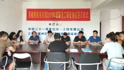 新入職員工在熟悉項目環(huán)境、基本概況,熟讀《中鐵二十一局集團第四工程有限公司師徒結(jié)對管理辦法》之后,項目部精心挑選了5名師傅與2名新員工簽訂師徒結(jié)對協(xié)議書,開啟了他們?yōu)槠谝荒甑?ldquo;師徒結(jié)對”奮斗之旅。