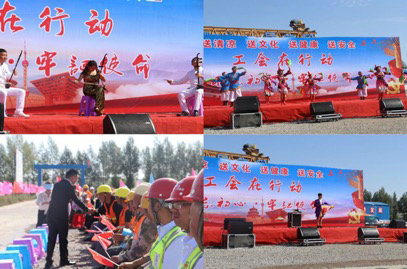 張掖市七一歌舞團(tuán)、市中學(xué)教師還為一線工人們奉獻(xiàn)了一場精彩的演出,讓全體參建職工和工人在百忙中感受到一場藝術(shù)盛宴,演出的節(jié)目有充滿激情的二胡、優(yōu)美的舞蹈、動人的歌聲,神奇的魔術(shù),在這炎炎夏日中為一線工人們帶來了精神上的歡愉。