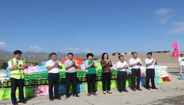 趙惠琴一行為奮戰(zhàn)在酷暑下的一線建設(shè)者送去了綠豆、小米、清油、礦泉水、冰糖等防暑降溫用品。