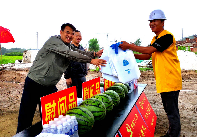 陰雨霏霏、潮熱難耐。朱建國(guó)一行深入到濱綏線K60立交橋工地看望一線參戰(zhàn)職工,把防曬服、西瓜、礦泉水等防暑降溫慰問(wèn)品逐一送到大家手中,送上公司工會(huì)組織的誠(chéng)摯問(wèn)候與祝福,感謝大家的堅(jiān)守和付出。叮囑項(xiàng)目部要科學(xué)合理安排作息時(shí)間,注意飲食衛(wèi)生和職工身體健康。囑咐參戰(zhàn)職工要注意防暑降溫,提高自我保護(hù)意識(shí),確保安全生產(chǎn)。