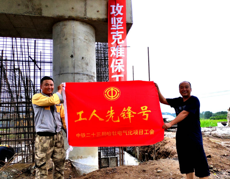 時(shí)值中伏,哈牡電氣化改造工程施工現(xiàn)場(chǎng),一派熱火朝天的大干快上景象,黨員突擊隊(duì)、工人先鋒號(hào)、青年文明號(hào)旗幟高揚(yáng),“不忘初心擔(dān)使命、攻堅(jiān)克難保工期”等宣傳條幅鮮艷奪目,展示了項(xiàng)目大干快上,期到必成的決心和行動(dòng),正在向“9.30”節(jié)點(diǎn)工期目標(biāo)發(fā)起最后的沖擊。