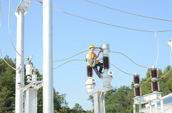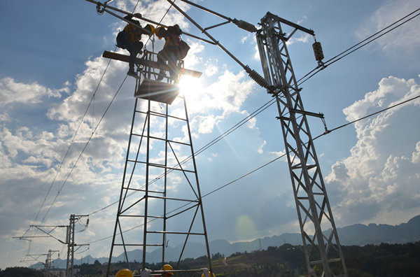 圖為:電力專業(yè)工人們?cè)?0度高溫下進(jìn)行電纜敷設(shè)。