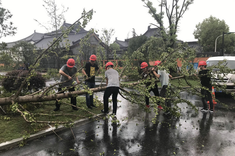 8月10日,今年最強臺風“利奇馬”在浙江省沿海登陸。中鐵建大橋局電氣化公司杭州地鐵8號線項目部聞“風”而動,提前謀劃部署,通過采取現(xiàn)場安檢、視頻學習等多種措施,確保人員、設備物資的安全。10日下午,項目職工在現(xiàn)場安檢返回途中,發(fā)現(xiàn)蕭山區(qū)創(chuàng)建村主干道旁大樹因經不起臺風“利奇馬”的肆虐,已被連根拔起倒在路邊,嚴重影響了交通安全。險情就是命令!在項目書記王志強的帶領下,項目職工冒著強風和暴雨搬走倒伏的樹木,清理路面的樹葉、殘枝,及時消除安全隱患,確保交通干道通暢,為百姓出行提供有力保障。