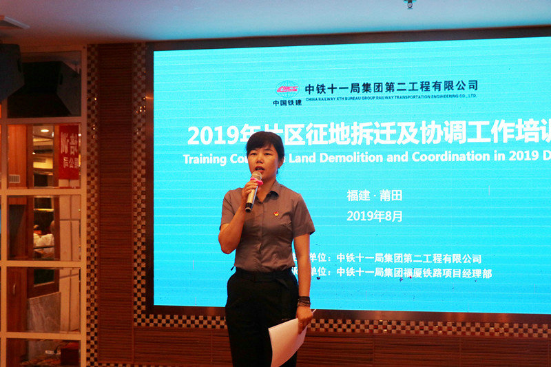8月30日至31日,中鐵十一局集團第二工程有限公司首次片區(qū)征地拆遷及協(xié)調工作培訓班在二公司福廈鐵路項目舉辦。中鐵十一局集團福廈鐵路局指項目黨工委書記孫昱,莆田市秀嶼區(qū)發(fā)改局黨組書記、局長林玉樹,二公司副總經理董瑞武等領導出席開班儀式并講話。征地拆遷及協(xié)調工作培訓班成功舉辦