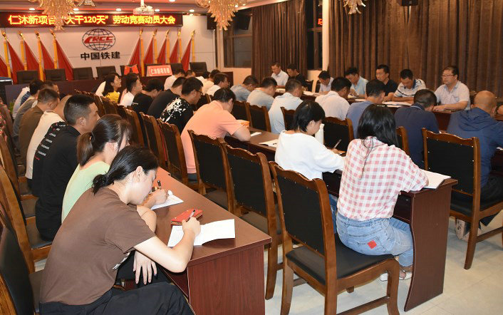 為統(tǒng)一思想,凝聚項(xiàng)目團(tuán)隊(duì)力量,9月7日,中鐵二十一局三公司仁沐新項(xiàng)目召開“大干120天”勞動(dòng)競(jìng)賽動(dòng)員會(huì)。項(xiàng)目部全體人員、工區(qū)負(fù)責(zé)人、工區(qū)技術(shù)主管、各施工隊(duì)負(fù)責(zé)人參加會(huì)議。會(huì)議由項(xiàng)目副書記陳濤主持。
