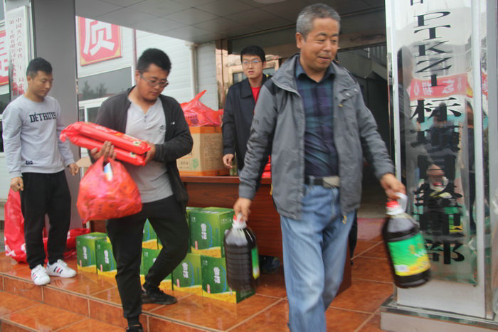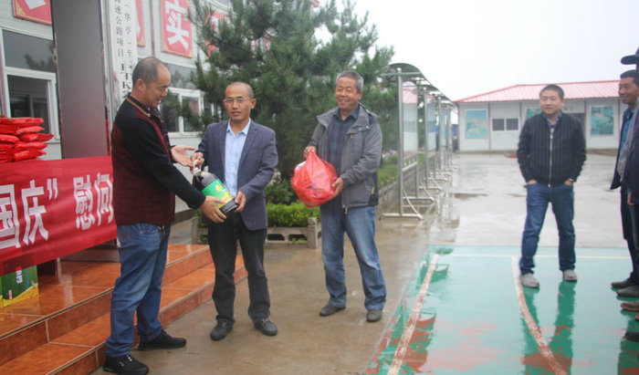 項目部副經(jīng)理張永為施工班組發(fā)放慰問品