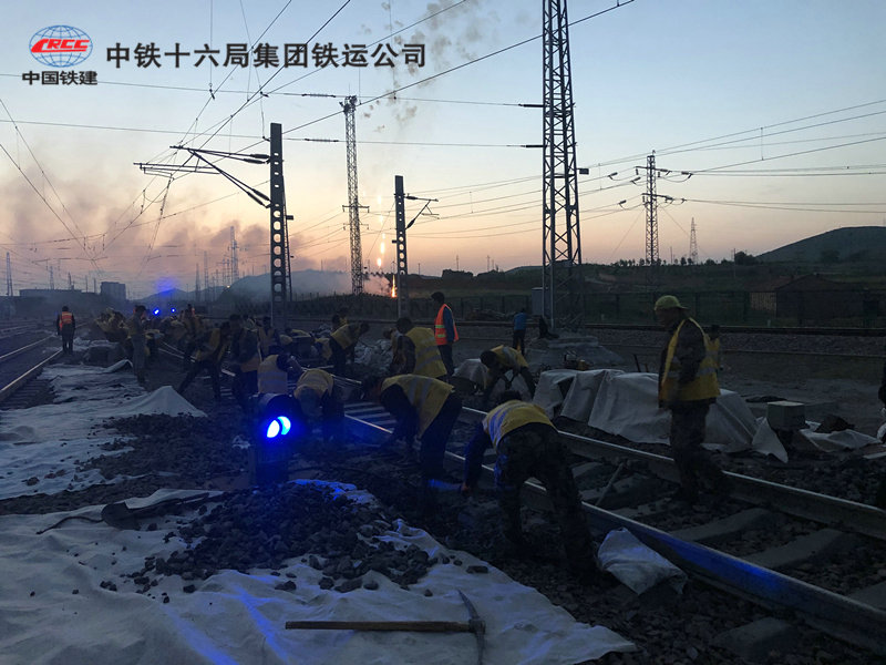 項(xiàng)目部主要承擔(dān)神池南站道岔及渡線人工清篩換砟小機(jī)搗固、更換曲線磨耗軌、神池南站成組更換道岔疲勞軌件及更換PG5鋼軌。