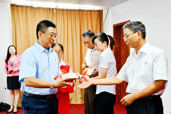 主題活動暨啟動儀式共分“薪火相傳守初心”、“品味信仰的味道”和“紅心向黨寫忠誠”三個篇章。在駐地東劉村慶祝70周年主題活動中,中鐵十二局集團南沿江城際鐵路項目經(jīng)理部黨工委班子成員全部出席。黨工委書記李躍林在為青老共學(xué)十九大專題中,為新老黨員頒發(fā)了學(xué)習(xí)十九大書籍,并在與駐地東劉村黨總支共建的“黨員黨性體檢中心”啟動儀式上莊重的印上了自己的手印。