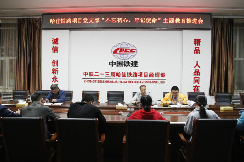 會(huì)前,哈佳鐵路項(xiàng)目黨支部委員會(huì)根據(jù)中鐵二十三局集團(tuán)黨委、二公司黨委“不忘初心,牢記使命”主題教育要求,認(rèn)真組織研討,并結(jié)合項(xiàng)目部工作實(shí)際與特色制定了相關(guān)實(shí)施方案與推進(jìn)計(jì)劃。在推進(jìn)會(huì)上,項(xiàng)目部全體黨員重溫了局集團(tuán)和二公司黨委的相關(guān)文件,黨支部宣傳委員王振東對(duì)《哈佳鐵路項(xiàng)目黨支部“不忘初心,牢記使命”主題教育實(shí)施方案》做了部署解讀,黨支部紀(jì)檢委員賈廣生對(duì)《哈佳鐵路項(xiàng)目部主題教育推進(jìn)計(jì)劃安排》做了細(xì)致分析,讓每個(gè)黨員以更強(qiáng)烈的政治責(zé)任感和使命感投入到主題教育中,確保主題教育推進(jìn)的扎扎實(shí)實(shí)。