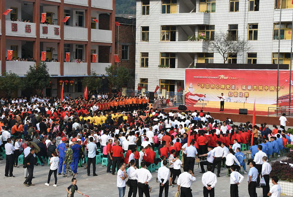 “不忘初心跟黨走,砥礪共筑中國夢(mèng)”,慶祝中華人民共和國建國70周年,9月28日上午,四川屏山縣中都鎮(zhèn)在中心學(xué)校廣場(chǎng)以“紅歌會(huì)”的形式舉辦了慶?;顒?dòng)。