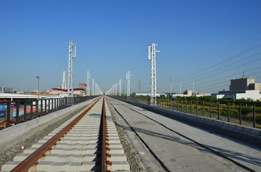 中鐵十八局集團(tuán)五公司商品混凝土公司參與施工的天津新港北鐵路集裝箱中心站工程(劉姍攝)