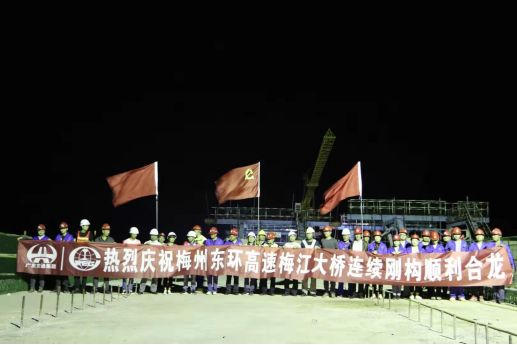 隨著最后一方混凝土澆筑完成,由中鐵七局集團有限公司承建的梅大高速公路梅州東環(huán)支線第一合同段的控制性工程梅江大橋連續(xù)剛構右幅主跨(跨度128米),于2019年10月25日凌晨2點,順利合攏,標志著梅州東環(huán)高速主線貫通取得又一重要突破。