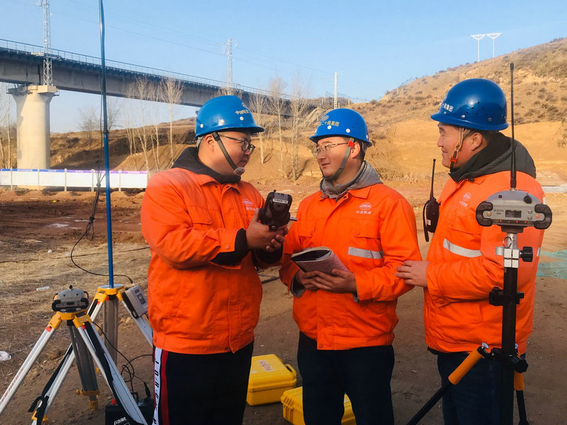 職工們認(rèn)真調(diào)整GPS測(cè)量?jī)x,比落實(shí)、比效率,為后期施工做好準(zhǔn)備
