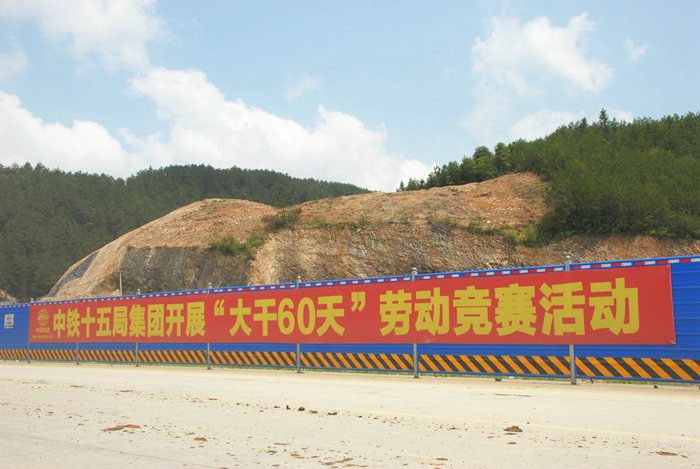 為了使勞動競賽活動從形式到內(nèi)容如火如荼、成效更大,項目部工會牽頭制定了更具人性化、更能充分調(diào)動人員積極性、提高全員生產(chǎn)率、發(fā)揮機(jī)械設(shè)備最大效率的實施方案。在勞動競賽中,班子成員齊心合力積極想辦法解決分管片區(qū)的各種難題,化解各類矛盾;各職能部門恪盡職守,做到每周的工作必須消化完;現(xiàn)場施工人員嚴(yán)格按照施工方案進(jìn)行施工,保質(zhì)保量、安全地完成每天、每周任務(wù)。從隧道掘進(jìn)噴錨支護(hù)襯砌,到橋梁、路基施工再到征拆,均按計劃有條不紊地進(jìn)行。為鼓舞士氣,在施工現(xiàn)場懸掛多幅有關(guān)安全、質(zhì)量、進(jìn)度等內(nèi)容的長大標(biāo)語。輿論宣傳效應(yīng)成為促進(jìn)勞動競賽收獲碩果的推手,潛移默化地影響和激勵員工做好份內(nèi)的工作,有為才有位成為共識。