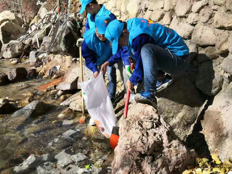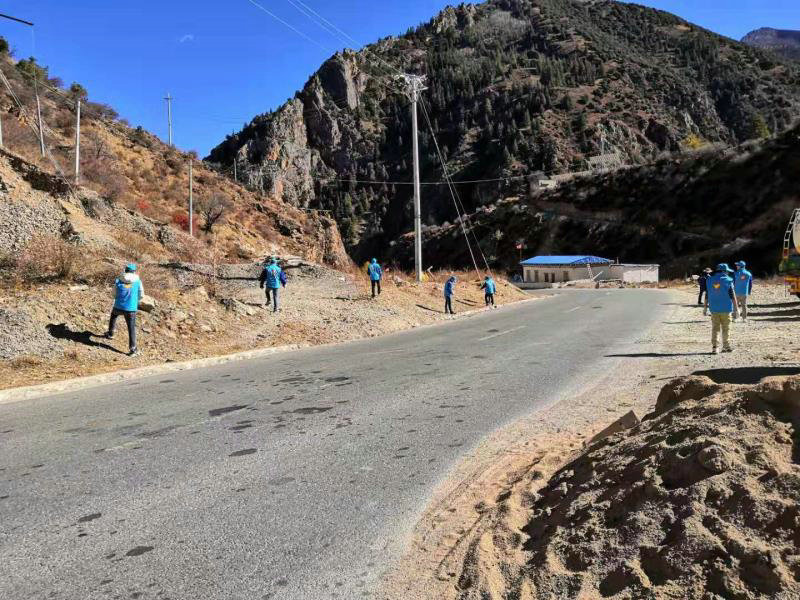 國道318線(覺巴山段)屬于川藏旅游國防線,每年夏季,沿途游客甚多,路邊時有被丟棄白色垃圾;沿途崇山峻嶺,巖石風化,時不時有大塊碎石滾到路上,存在行車安全隱患。項目部“祁建光志愿服務隊”每名志愿者都配備了工具,沿國道318線兩側及河道進行全面清理,把撿起來的塑料袋、紙片等雜物進行了集中收集,把路中的石塊撿到路邊。項目志愿者們通過自身行動向過往游客及當?shù)夭孛袢罕妭鬟f了“維護西藏綠水清山之凈土,人人有責”的環(huán)保理念。