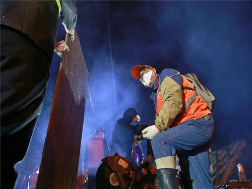員工們正在緊張忙碌地進行長軌途卸作業(yè)
