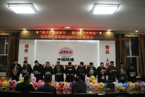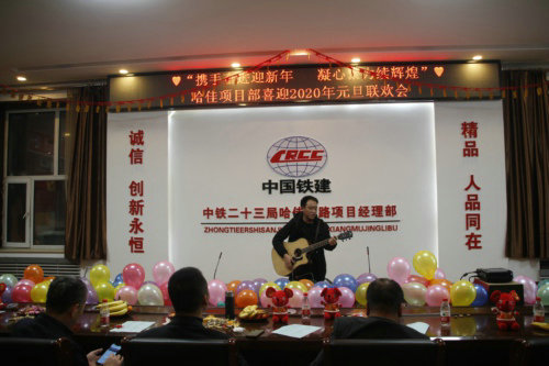 “我和我的祖國一刻也不能分割,無論我走到哪里 都流出一首贊歌……”領導班子們嘹亮的歌聲在中鐵二十三局二公司哈佳鐵路項目部八樓會議室響起,拉開了項目部“攜手奮進迎新年,凝心聚力續(xù)輝煌”元旦聯(lián)歡的序幕。