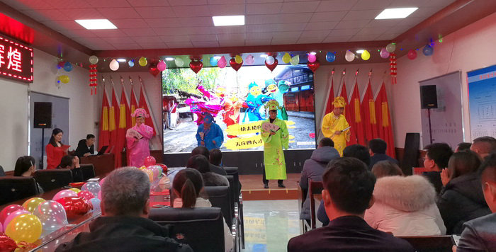 應(yīng)邀參加本次文藝匯演活動領(lǐng)導(dǎo) 下午4點,在天莊高速TZZB6標大會議室,活動在歡快的《恭喜發(fā)財》歌曲聲中拉開序幕,隨后一個個精彩的節(jié)目讓臺下觀眾應(yīng)接不暇。有委婉動人的現(xiàn)代舞《失戀陣線聯(lián)盟》、 《Good time》;有幽默搞笑的傳統(tǒng)民間曲藝三句半《四大才子賀元旦》;有柔中帶剛的《太極功夫扇》;有優(yōu)美動聽的獨唱《濤聲依舊》、《黨啊 親愛的媽媽》;有鏗鏘激昂的詩朗誦《紀念人民英雄紀念碑》;有職工自編自導(dǎo)自演的小品《工程式相親》;有幻彩絢麗,扣人心弦的魔術(shù)表演,臺上演職人員們載歌載舞,臺下觀眾看得如癡如迷,現(xiàn)場氣氛熱烈,歡呼聲、鼓掌聲此起彼伏,整個活動現(xiàn)場充滿喜悅的氣氛。