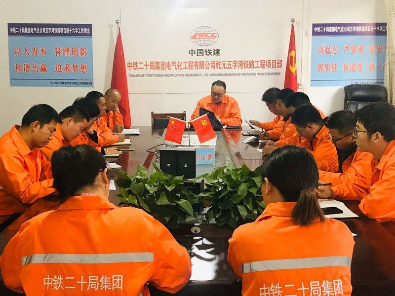 乾元五字灣鐵路項目堅持“支部建在項目上”的組織建設方針。做到“五同五抓五加強”工作思路、措施和內容。“五同”就是堅持項目黨組織與項目部同步組建;堅持黨組織書記與項目經理同步配備;堅持項目黨建工作與項目管理同步部署;堅持項目黨組織工作制度與項目管理制度同步制訂;堅持項目黨組織工作績效與項目施工管理績效同步考核。“五抓”是抓組織、抓班子、抓教育、抓活動、抓落實。“五加強”就是加強人才隊伍建設;加強項目文化建設;加強黨風廉政建設;加強項目黨建聯建;加強外協隊伍建設。把項目經理負責制與“大事集體決策,黨政共同負責”結合起來,使項目成為黨建工作的陣地。同時,積極把黨建工作納入項目機構、編制和考核體系,保證了黨建工作有崗位、有人員、有目標、有考核,與生產同布置、同落實、同檢查、同考核,使黨建工作切實成為促進項目施工管理的“潤滑劑”和“助推器”。