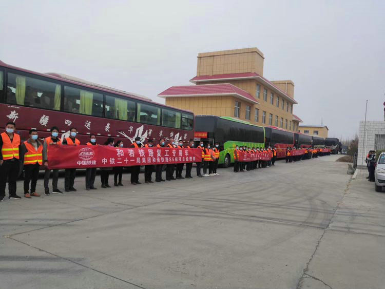 3月13日,中鐵二十一局一公司和若鐵路S5標(biāo)項目經(jīng)理部開啟“一站式”返崗直通車,6輛大巴車從新疆巴州且末縣出發(fā)到甘肅蘭州、甘谷一帶,往返5000多公里接245名民工返崗復(fù)工。