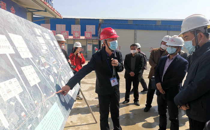 圖為孔曉宏市長等領(lǐng)導(dǎo)察看路基施工