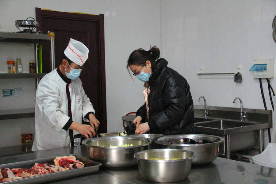 后勤保障,她是職工的“定心丸”。在經(jīng)歷了14天隔離醫(yī)學(xué)觀察并健康檢測合格后,她終于如愿以償?shù)某晒ι蠉?。面對?yán)峻的疫情形勢,她積極投入工作,由于廚房人手不足,她主動承擔(dān)起項(xiàng)目部人員后勤保障工作,協(xié)助食堂管理人員和廚師做好職工的飲食、項(xiàng)目隔離人員送餐、食堂錯峰打飯及就餐、隔離區(qū)域廢棄物集中回收、消毒、掩埋處理等工作,每天及時在隔離群里面統(tǒng)計隔離人員需要盒飯的數(shù)量、口味等信息,確保他們每個人都能吃上營養(yǎng)均衡、美味可口的隔離“套餐”。