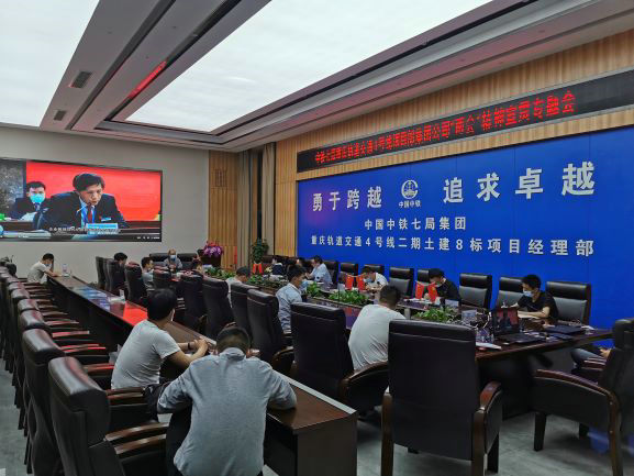 3月24日晚,中鐵七局武漢公司重慶軌道交通4號線項目部召開學習集團公司“兩會”精神專題會議,重點對集團公司黨委書記、董事長王珂平的講話及集團公司黨委副書記、總經理師建軍的工作報告進行了深入學習,并結合重慶項目生產經營提出要求。會議由項目黨支部副書記張磊主持,項目部全體在崗員工參加會議。