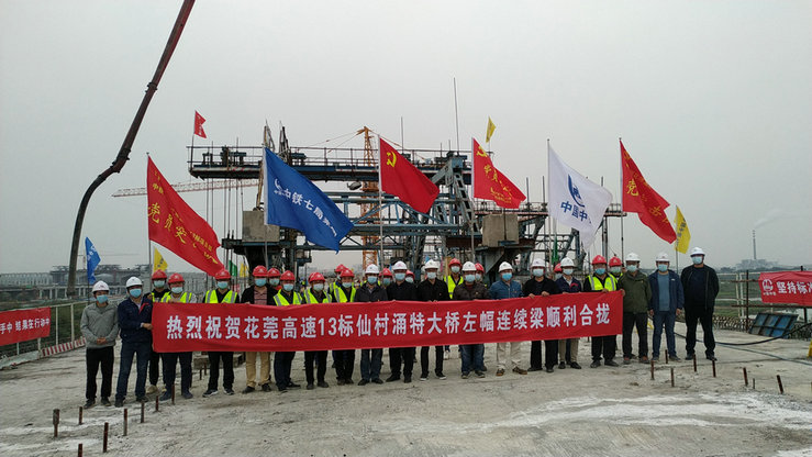4月2日,由中鐵七局承建的花莞高速SG13標項目仙村涌1號特大橋左幅水中主墩連續(xù)梁合龍,標志著花都至東莞高速全線首個水上連續(xù)梁順利合龍。
