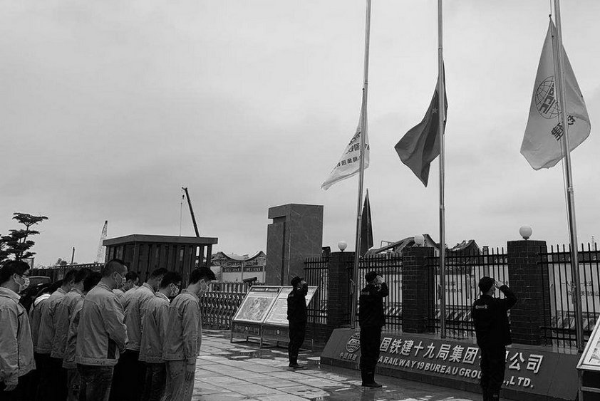 4月4日早上,全線所有的國(guó)旗、中國(guó)鐵建司旗全部降至半旗位置,上午9點(diǎn)多鐘以后,全線陸續(xù)停工,當(dāng)10點(diǎn)到來(lái)的時(shí)候,按照各單位統(tǒng)一組織,全線停止了一切工作和操作,為今年新冠病毒疫情戰(zhàn)役中壯烈犧牲的每一個(gè)同胞默哀。