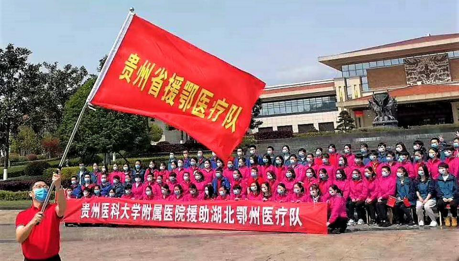 在貴州醫(yī)科大學(xué)附屬醫(yī)院援助湖北鄂州醫(yī)療隊(duì)的解除隔離現(xiàn)場,兩湖一河PPP項(xiàng)目員工和酒店工作人員一道手舉橫幅、揮舞小旗,用真誠熱情的話語與這些最美逆行背影依依道別。