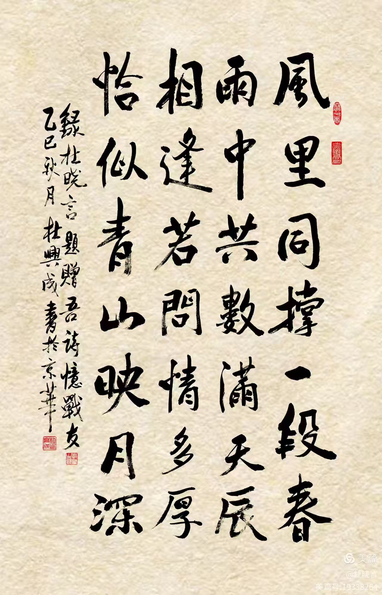 ——記經(jīng)典軍旅歌曲《戰(zhàn)友之歌》著名詞曲作家杜興成兄贈(zèng)書(shū)法